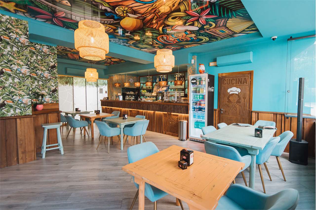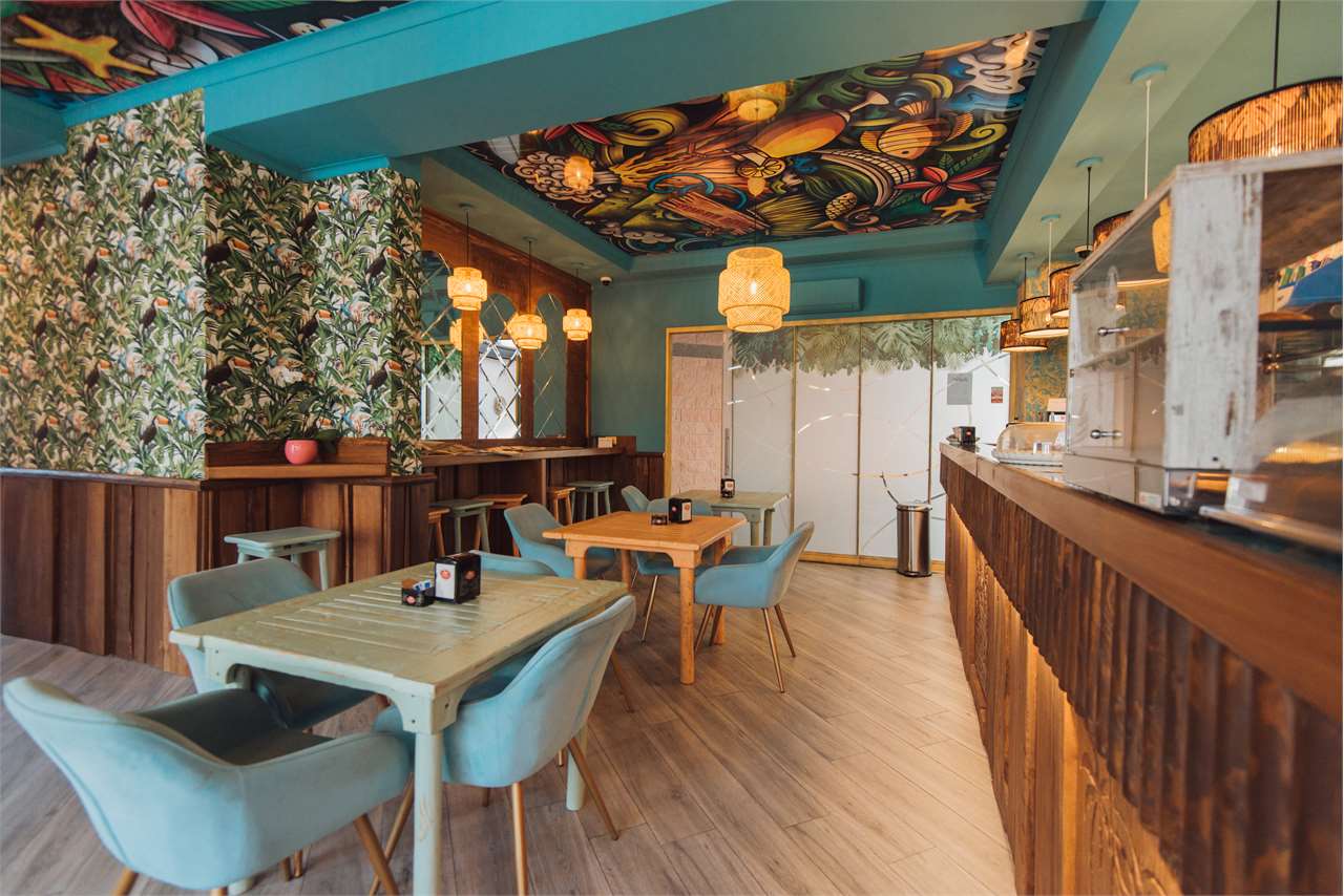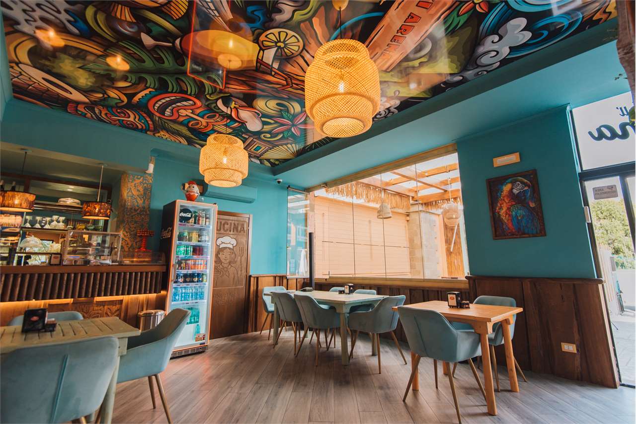 Il bar interno, di circa 60 mq, è stato recentemente ristrutturato secondo un raffinato concept ispirato alla giungla, con finiture di pregio, un’illuminazione studiata nei dettagli e un’atmosfera accogliente e distintiva, capace di sorprendere e coinvolgere la clientela fin dal primo ingresso. Il bancone, ampio e scenografico, diventa il fulcro dello spazio, affiancato da soluzioni di arredo funzionali che consentono sia consumazioni rapide sia momenti di maggiore relax. L’ambiente si presta perfettamente a format come cocktail bar, lounge bar o bistrot contemporaneo.