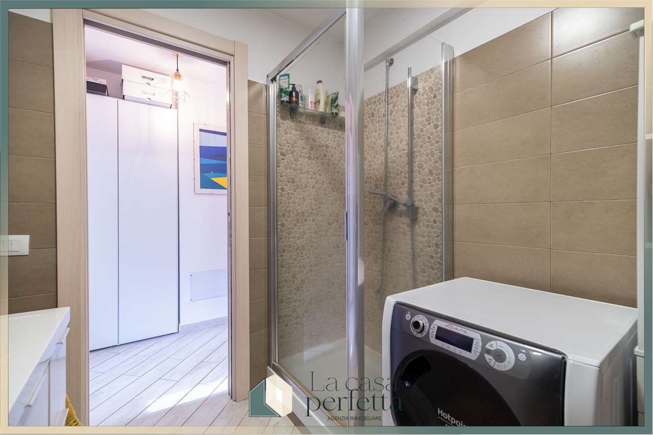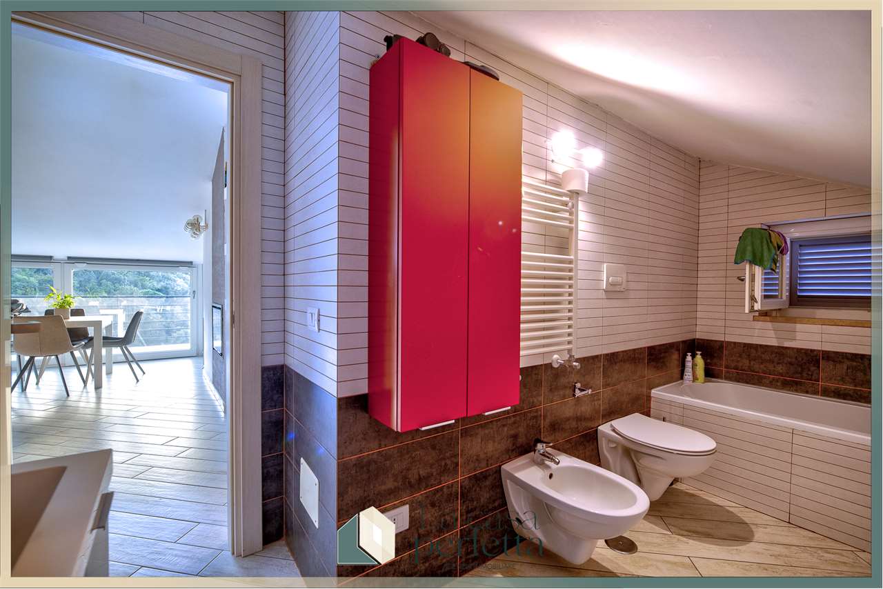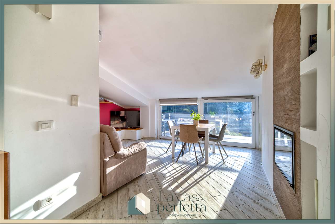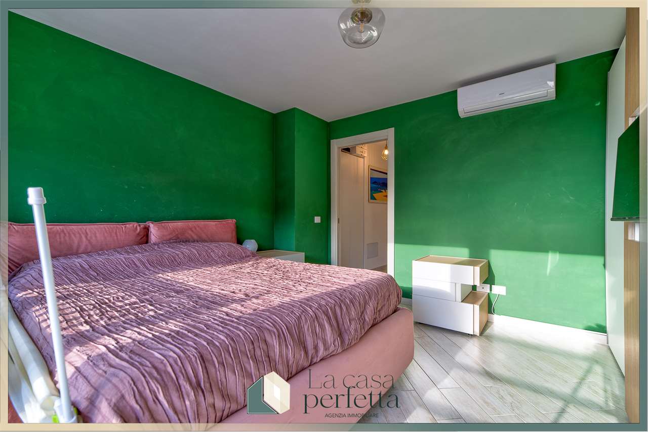 Al piano d’ingresso trovi la zona notte: una camera matrimoniale di generose dimensioni illuminata da un’ampia vetrata, una cameretta con balcone, un pratico ripostiglio e un elegante bagno con doccia . Salendo la scala interna ti accoglie la zona giorno mansardata, caratterizzata da una sala con camino e grande vetrata panoramica che si apre su un terrazzo angolare con splendida vista mare, il luogo perfetto per cene all’aperto e momenti di relax. A completare il piano ci sono un cucinotto completamente arredato, anch’esso con accesso diretto alla terrazza, e un secondo bagno con vasca.