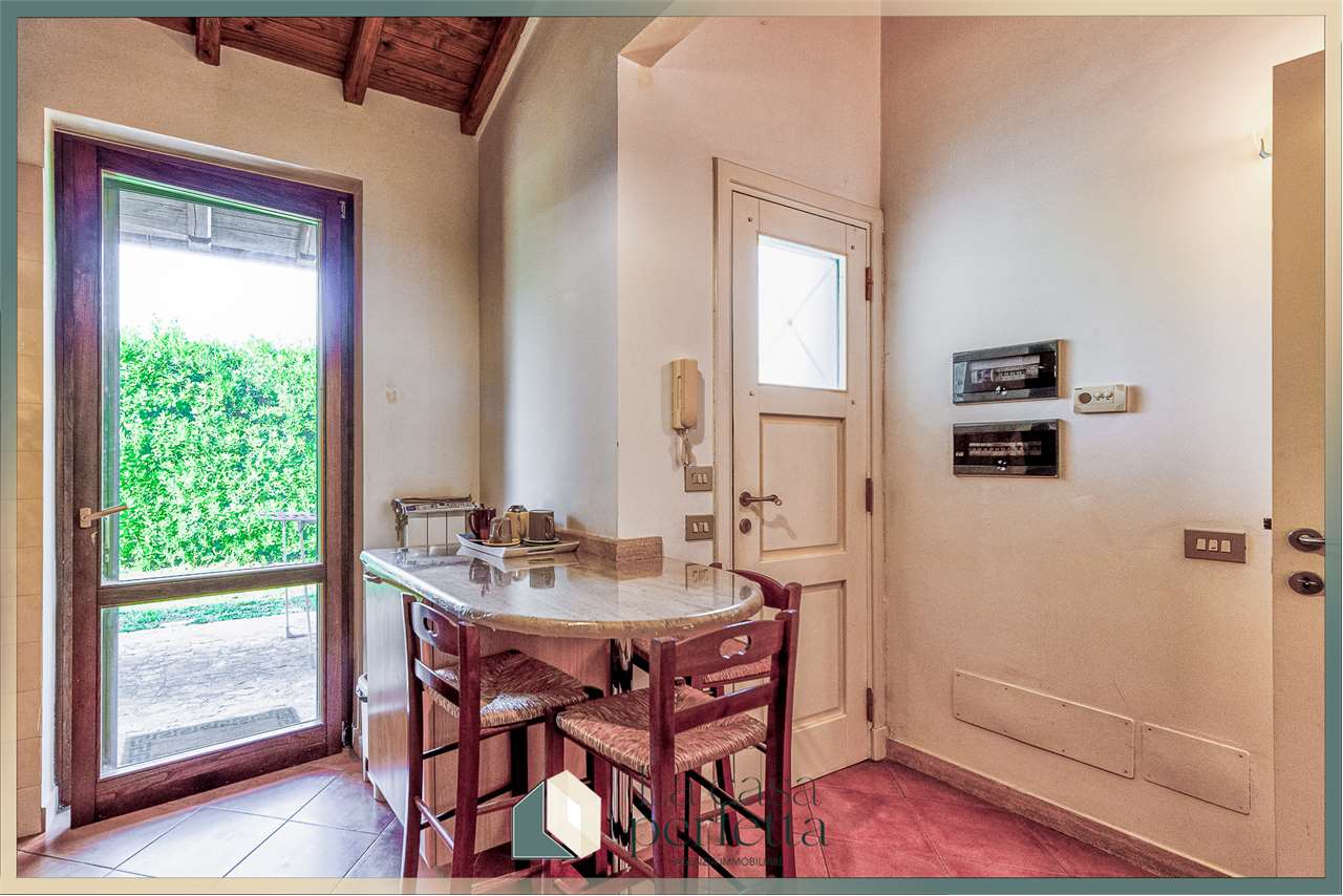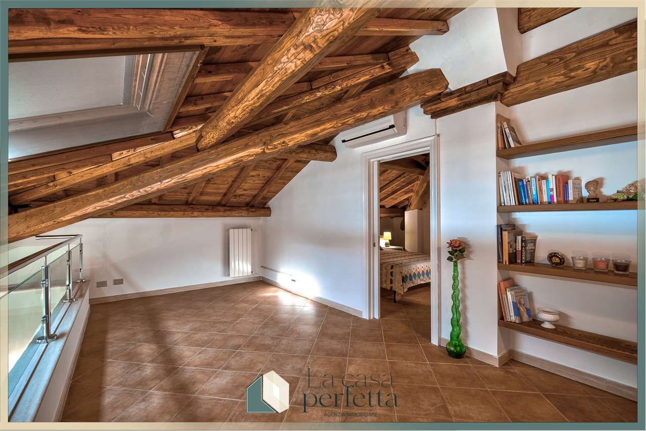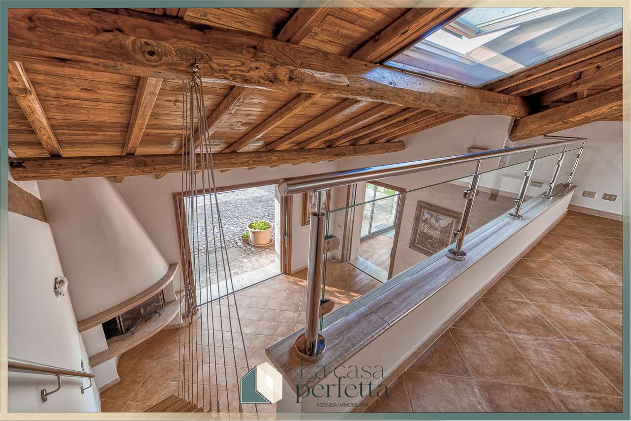 Un vialetto in pietra conduce all’ingresso dove ci accoglie la zona giorno che si distingue per un'atmosfera calda e accogliente, dove il legno a vista dei soffitti con travi massicce e le ampie superfici vetrate creano un equilibrio perfetto tra rusticità e luminosità. Il salone principale, ampio e ben distribuito, è dominato da un suggestivo camino angolare incassato, adiacente allo stesso troviamo una spaziosa veranda chiusa con vetrate scorrevoli, affacciata direttamente sul giardino e sulla piscina: uno spazio versatile e luminoso, perfetto come sala relax o angolo lettura, in continuità con l’esterno grazie alle ampie aperture. La cucina abitabile, comoda e funzionale, ha accesso diretto all’area esterna e al giardino. A valorizzare ulteriormente l’ambiente, un elegante soppalco a vista affacciato sul soggiorno ospita un comodo studio e si estende fino ad una camera matrimoniale con bagno privato, posta nel sottotetto e caratterizzata da un’invidiabile intimità, il tutto illuminato da Velux automatici.
